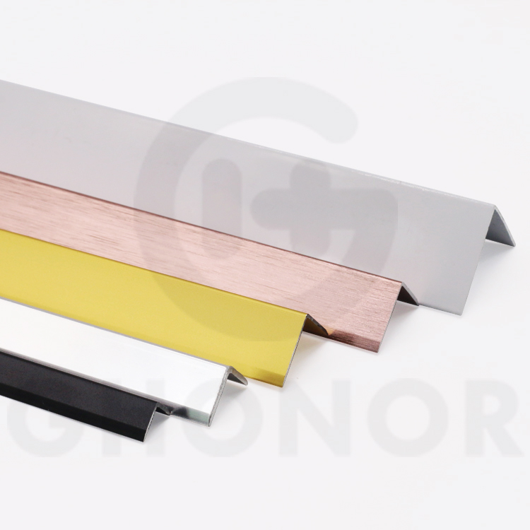 Ghonor aluminum wall corner protectors, also known as V-shaped tile edge trims, are crafted from high-quality 6063 T5 aluminum alloy processed in our factory. Their sharply defined V-shaped design effectively prevents edge chipping and cracking caused by everyday tile impacts, while adding a touch of modern architectural aesthetics to homes and public spaces. This product provides robust yet simple protection for interior wall tile corners. The excellent corrosion and wear resistance of aluminum alloy makes it suitable for various environments with high traffic and humidity.